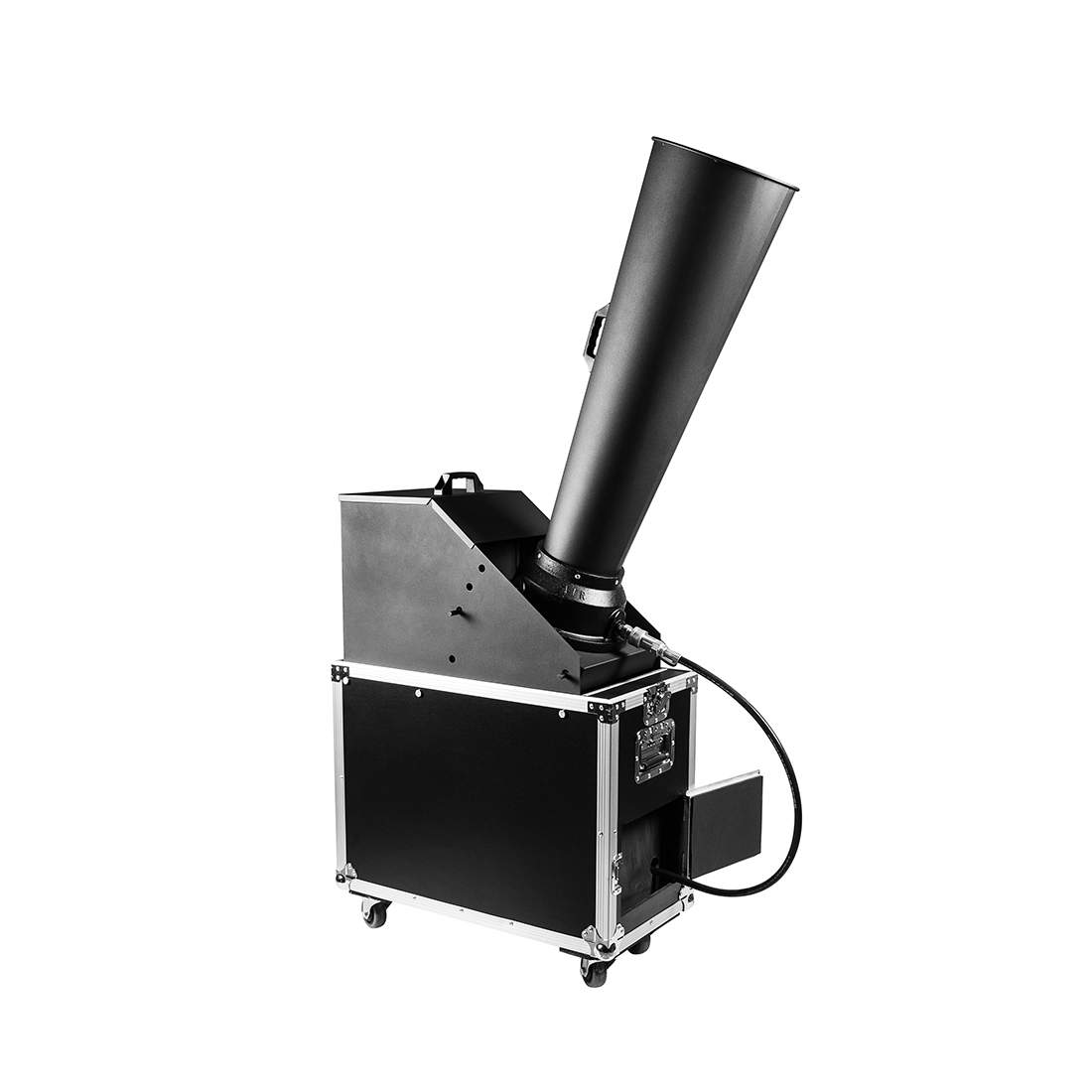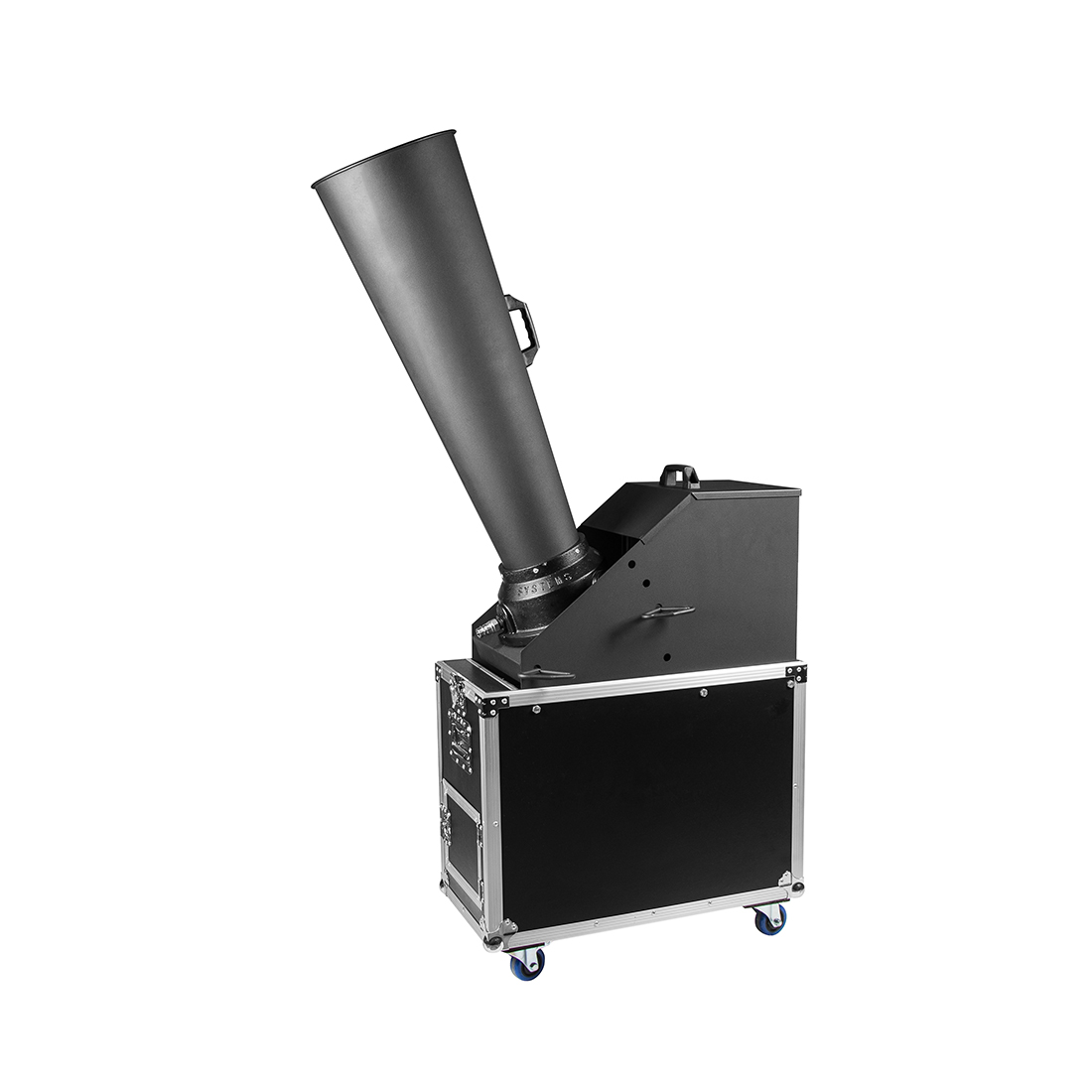• Spray height: 15 – 20 meters • Set-Up: – • Voltage: Voltage: AC100-220V, 50Hz/60hz • Max Power: 200W • Control: DMX 512/ Electric control • DMX Channel: 1 • Confetti Load: 20kg • N.W.: 68KG • G.W.: 77KG • Product Size: 74 x 38 x 137cm • Packing Size (Carton): 74 x 38 x 137cm • Component: Power Cord, DMX Cord • Packing Option: Ready flycase