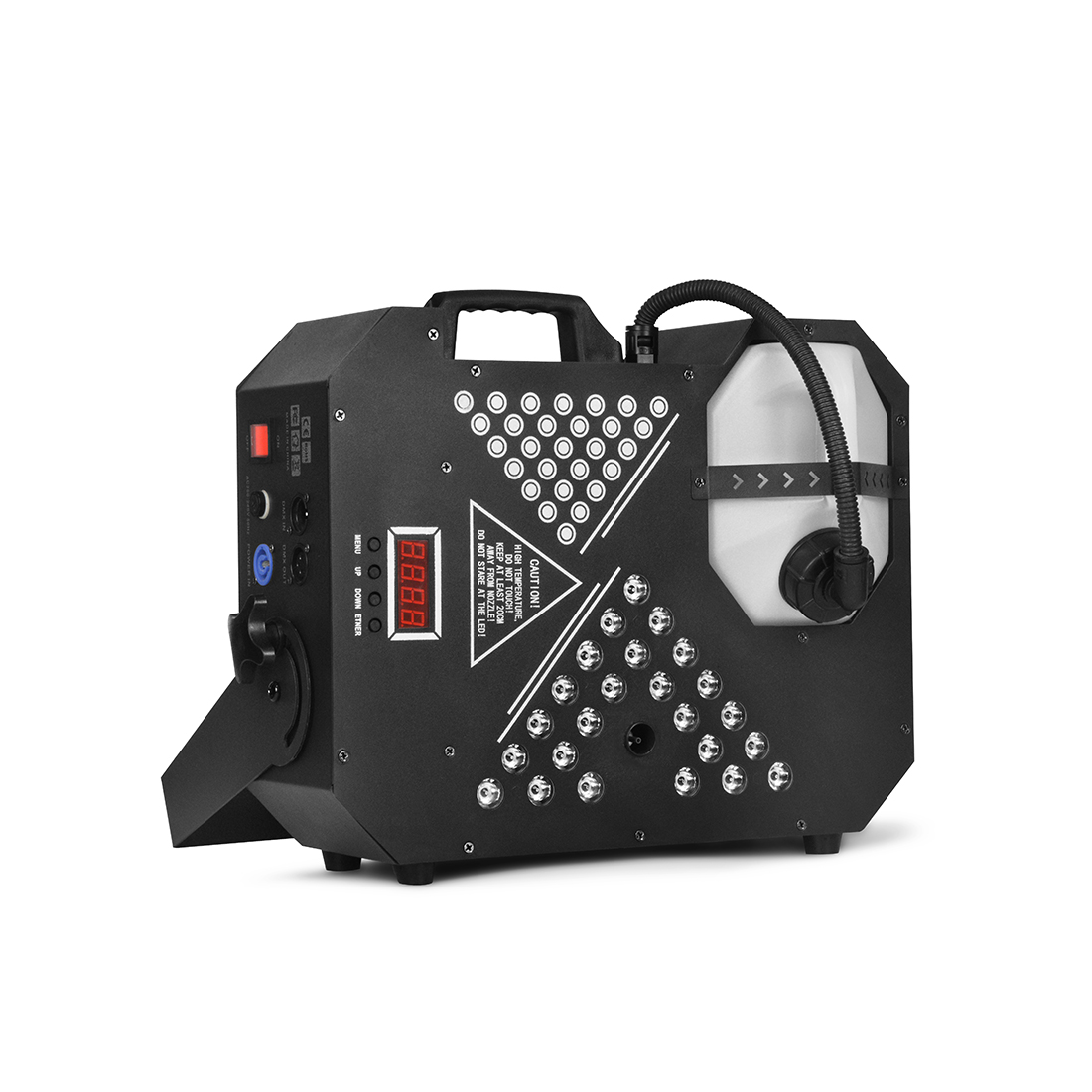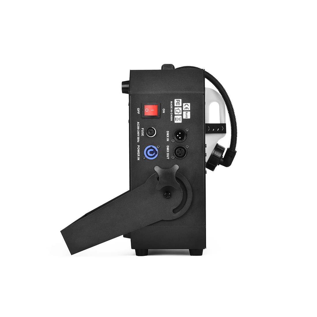 • Spray Height: 7-8 meters • Warm-up time: 4 mins • Voltage: AC110V -220V, 60Hz /50Hz • Max Power: 1500W • Control: Remote / DMX512 • LED: 24pcs x 3W RGB • Fuel Consumption: 2L/hour • N.W.: 7KG • G.W.: 9.2KG • Product Size: 40x34x21cm • Packing Size (Carton): 46x40x28 cm • Component: Power Cord, DMX Cord • Packing Option: Normal Carton