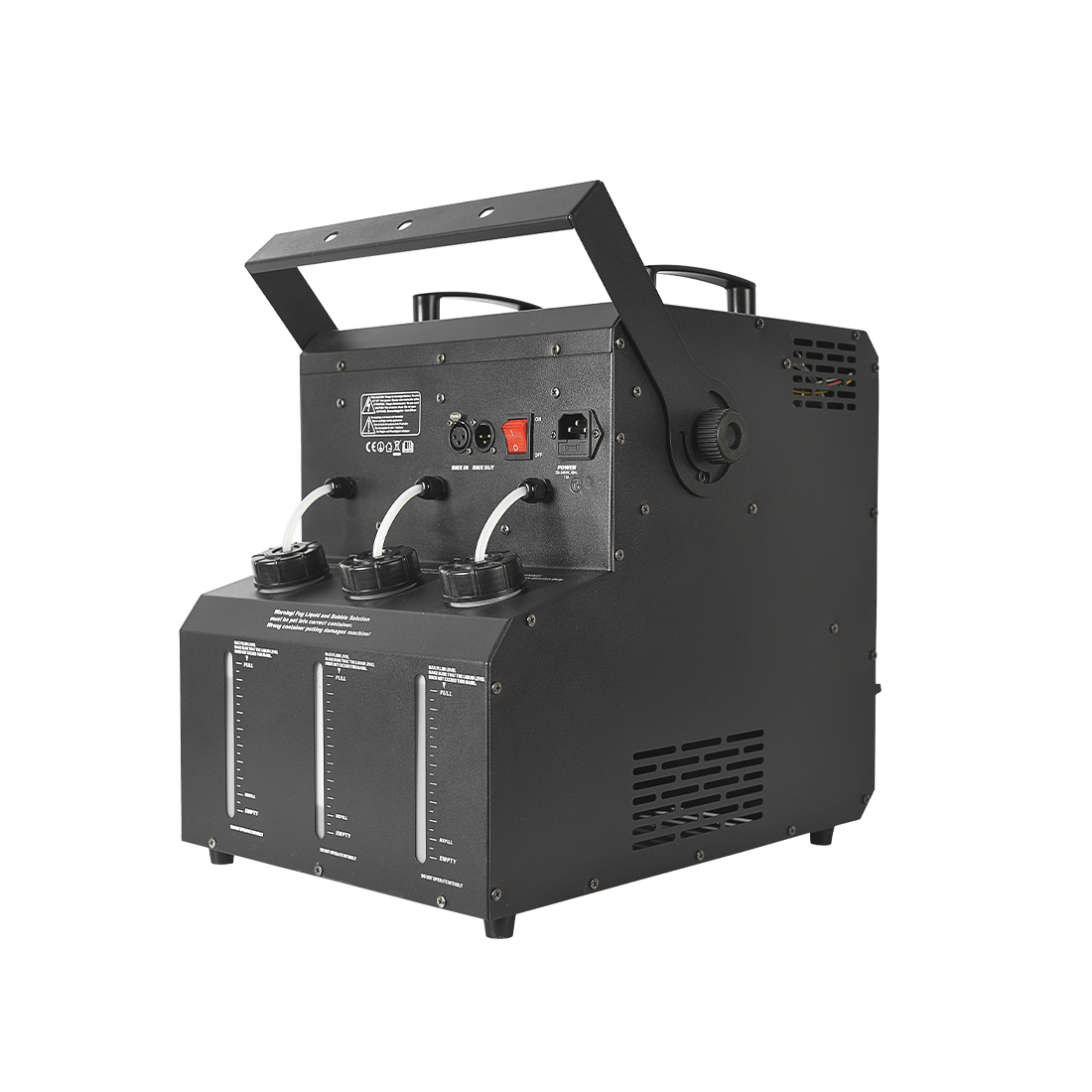 • Coverage 400㎡ • LED 24x3W 4-in-1 RGBW • Voltage AC220V/240V, 50Hz/60hz • Max Power 900W • Control DMX512 (8 Channels) / LCD Panel / Remote Control • Oil Capacity 2.3Lx3 • N.W. 14KG • G.W. 15KG • Product Size 43×32.5x44cm (L*W*H) • Packing Size 48.5x39x51cm (Carton) • Component Power Cord, DMX Cord