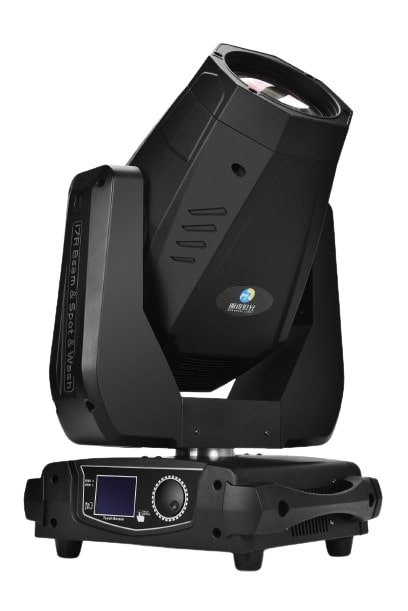 Weight: • 10,000 g Features: • Osram Sirius HRI 371W lamp (More than 4000 hours, 270 days warranty). • 1 color wheel. • 2 gobo wheels. • 2 interchangeable rotating prisms. • Animation wheel. • 2 to 65-degree zooming. • Optional folding clamp.